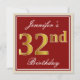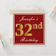 Elegant, Red, Faux Gold 32nd Birthday; Custom Name Invitation