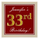 Elegant, Red, Faux Gold 33rd Birthday; Custom Name Poster
