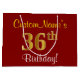 Elegant, Red, Faux Gold 36th Birthday; Custom Name Large Gift Bag