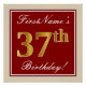 Elegant, Red, Faux Gold 37th Birthday; Custom Name Poster