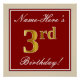 Elegant, Red, Faux Gold 3rd Birthday + Custom Name Poster