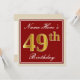Elegant, Red, Faux Gold 49th Birthday; Custom Name Invitation