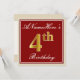 Elegant, Red, Faux Gold 4th Birthday + Custom Name Invitation