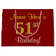 Elegant, Red, Faux Gold 51st Birthday; Custom Name Large Gift Bag