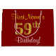 Elegant, Red, Faux Gold 59th Birthday; Custom Name Large Gift Bag