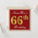 Elegant, Red, Faux Gold 66th Birthday; Custom Name Invitation