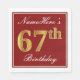 Elegant Red, Faux Gold 67th Birthday + Custom Name Napkin