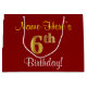 Elegant, Red, Faux Gold 6th Birthday + Custom Name Large Gift Bag