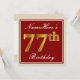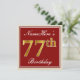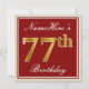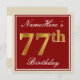 Elegant, Red, Faux Gold 77th Birthday; Custom Name Invitation