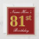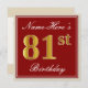 Elegant, Red, Faux Gold 81st Birthday; Custom Name Invitation