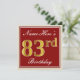 Elegant, Red, Faux Gold 83rd Birthday; Custom Name Invitation