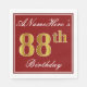 Elegant Red, Faux Gold 88th Birthday + Custom Name Napkin