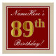 Elegant, Red, Faux Gold 89th Birthday; Custom Name Poster