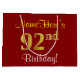 Elegant, Red, Faux Gold 92nd Birthday; Custom Name Large Gift Bag