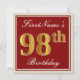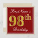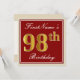 Elegant, Red, Faux Gold 98th Birthday; Custom Name Invitation