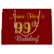 Elegant, Red, Faux Gold 99th Birthday; Custom Name Large Gift Bag