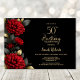 Elegant Red Floral Black 50th Birthday Party Invitation