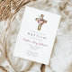 Personalised Elegant Red Floral Boho Cross Baptism Invitation.
