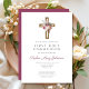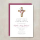 Elegant Red Floral Boho Cross First Communion Invitation