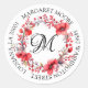 Elegant Red Floral Script Monogram Address Classic Round Sticker
