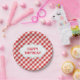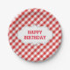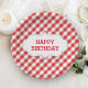 Elegant Red Gingham Pattern Personalised Birthday Paper Plate