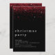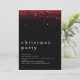 Elegant Red Glitter Confetti Christmas Party Black. The header is large in stylish lowercase with the details beneath. Lots of white space for a contemporary feel and a border of confetti style red glitter at the top on both sides. Easily personalise the text to your own details.