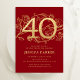 Elegant red gold 40th birthday party invitation. Customisable modern feminine design featuring roses botanical accents and faux glitter gold. Simple floral invite card perfect for a stylish female bday celebration. Personalise with your own details. Printed Zazzle invitations or instant download digital printable template.