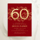 Elegant red gold 60th birthday party invitation. Customisable modern feminine design featuring roses botanical accents and faux glitter gold. Simple floral invite card perfect for a stylish female bday celebration. Personalise with your own details. Printed Zazzle invitations or instant download digital printable template.