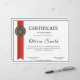 Designed to convey honor and longevity, this certificate features a sophisticated aesthetic with a vertical red award ribbon, a distinguished gold star seal with a laurel wreath border, and a subtle textured background that mimics high-quality security paper. The combination of navy blue serif headers and elegant black script for the recipient's name creates a look of formal importance.