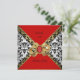 Elegant Red Gold Black White Damask Diamond Party Invitation