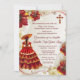 Celebrate your Quinceañera with an invitation that captures the essence of tradition and elegance. This Charra Quinceañera Invitation features a beautiful red and gold floral background, perfectly framing a beautiful charra dressed in a magnificent red and gold charra dress and hat. The intricate design is complemented by optional red and gold floral cross details, adding a touch of religious symbolism to your special event. You can remove the cross if needed.