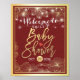 Elegant Red Gold Floral Frame Baby Shower Welcome Poster