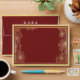 Wedding 5x7 Envelope Templates - Elegant Gold Floral Frame on Red Damask Background.