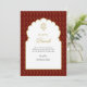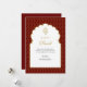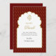 Elegant, simple traditional Ganesh in a golden arch with a gold and red paisley background Diwali card