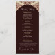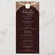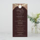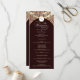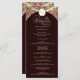 This wedding program card showcases a bold red background accented with ornate golden flourishes, creating a rich and luxurious design. At the top, a decorative crest frames the initials, while the centre highlights the couple’s names and full wedding service details in a refined layout. The dramatic pairing of red and gold conveys elegance, grandeur, and celebration, making this program card an ideal choice for formal weddings and festive occasions.
