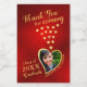 Create elegant Thank You bottle labels in red and faux gold for 2025 Graduation party favours with a unique design that features a photo in a heart shape, the Graduate's name and surname, and year. Templates make easy to type your Grad's name and year and upload a picture to create custom class of 2025 favour labels (or 2026, 2027, etc.)