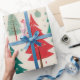 Elegant Red Green Watercolor Christmas Trees Pattern Wrapping Paper.