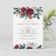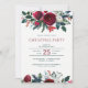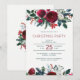 Elegant watercolor winter Christmas holiday party invitation template featuring red burgundy and white peony roses bouquets with seasonal pine green fir branches, red berries, and foliage. ++++++++++++++++ The invitation is suitable for winter holiday Christmas elegant rustic chic parties.