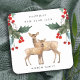 ELEGANT RED GREEN HOLLY BERRY DEER DUO NEW YEAR SQUARE PAPER COASTER