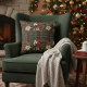 Elegant Red Green Plaid Red Poinsettia Christmas Cushion