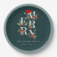 Elegant Red Green White Merry Christmas Foliage Paper Plate