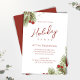 This design features an elegant holiday party invitations, a cute watercolor design, with red and green, pine tree greenery, a festive traditional, holly berries, with simple minimalist, classic, stylish foliage, winter Christmas party invites