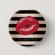 elegant red lips rose gold black stripes pattern 6 cm round badge