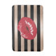 Modern and chick design featuring faux rose gold and black stripes, cute red lips.