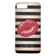 elegant red lips rose gold black stripes pattern Case-Mate iPhone case