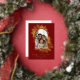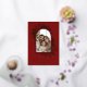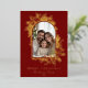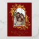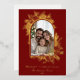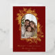 Send warm holiday wishes with this elegant Christmas card featuring a deep red background and a luxurious faux gold foil frame of festive florals and leaves. The front design beautifully showcases your favourite family photo, highlighted by intricate golden details for a timeless and sophisticated look.