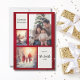 Elegant Red Modern Three Photo Collage Christmas Holiday Card