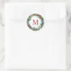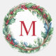 Elegant Red Monogram Initial Christmas Wreath Classic Round Sticker