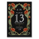 Capture timeless elegance with this Art Nouveau-inspired Table Number! Featuring red peonies, leaves against a black background, this design sets the tone for a sophisticated celebration. Perfect for weddings, galas, and milestone events! Please note that the gold on this product is NOT real foil; it is printed flat. ATTENTION: Items are printed exactly as they appear on your screen when you add them to the cart, so personalise and add each table number you need to your cart individually.