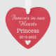 Simply elegant heart-shaped holiday memorial ornament can be personalized as a special remembrance keepsake for the loss of a pet cat, dog, or other loved one. Design features a photo on the front and custom 'Forever in our Hearts' with their name and lifespan on the back. Red color and font styles can be modified.
